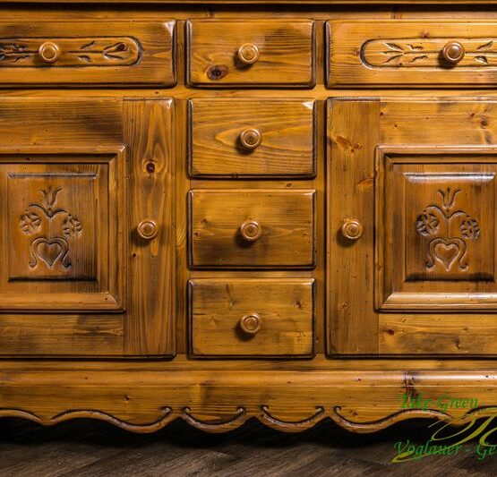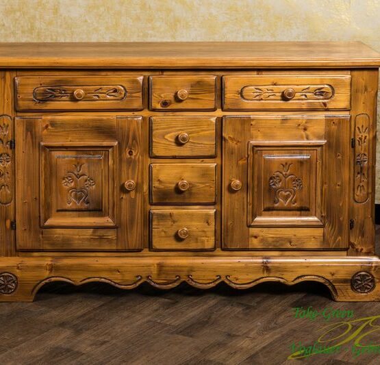 Die traditionellen Schnitzereien verleihen dieser Kommode eine besondere Note und machen sie zu einem echten Blickfang in jedem Raum.