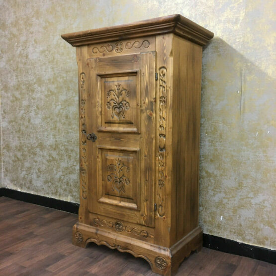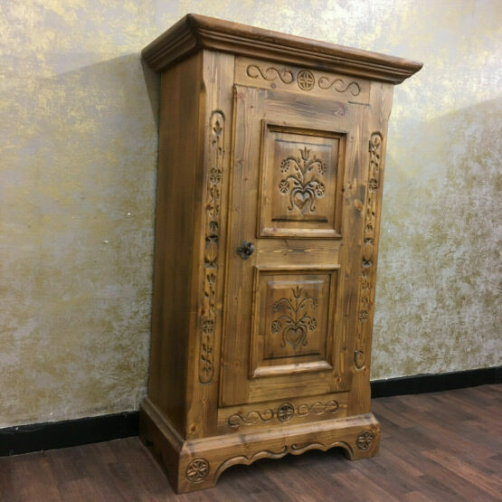 Dieser rustikale Bauernschrank aus der Serie “Anno 1600” von Voglauer ist ein wahres Meisterwerk. Mit seinen einzigartigen Kerbschnitzereien erhält der Schrank eine individuelle Note, die ihn zu einem echten Blickfang macht.