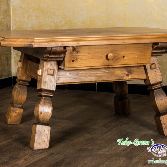 Die gedrechselten Tischbeine unterstreichen den charmanten Landhausstil und machen den Tisch zu einem stilvollen Blickfang in Ihrem Zuhause.