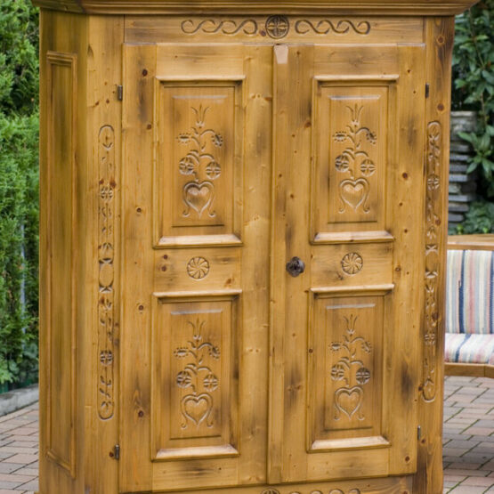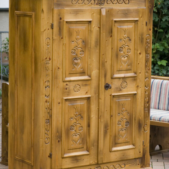 Dieser zweitürige Garderobenschrank im traditionellen Bauernstil ist ein echtes Schmuckstück für Ihren Eingangsbereich.