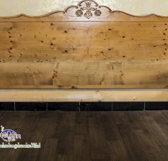 Dieses Doppelbett von Voglauer vereint rustikalen Charme mit funktionalem Design.