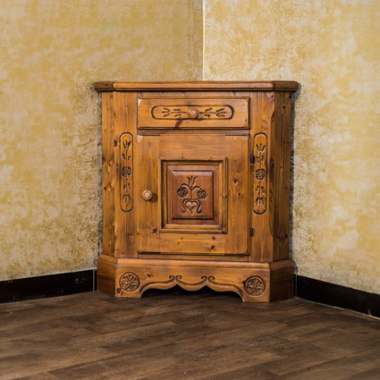 Diese Eckkommode ist nicht nur äußerst praktisch, sondern auch ein echtes Schmuckstück für Ihr Zuhause. Aufgrund ihrer kompakten Form eignet sie sich hervorragend für kleinere Räume und nutzt den Platz optimal aus.