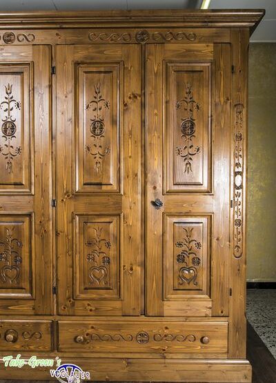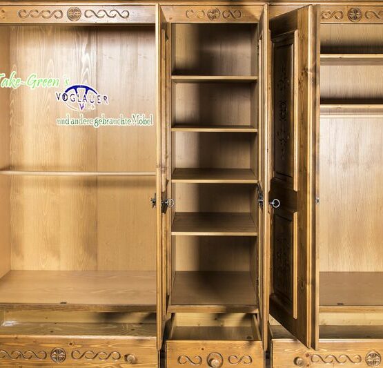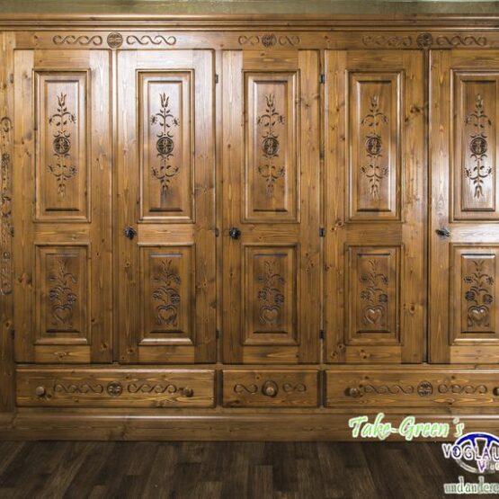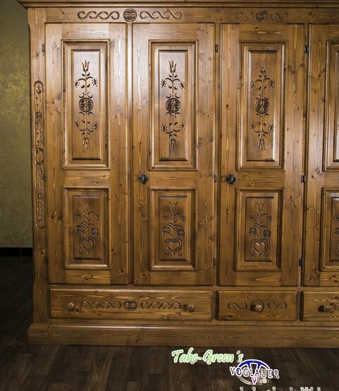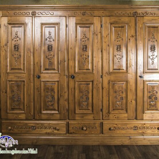 Der fünftürige Kleiderschrank aus der „Anno 1600“-Serie von Voglauer überzeugt durch großzügigen Stauraum und traditionelle Handwerkskunst.