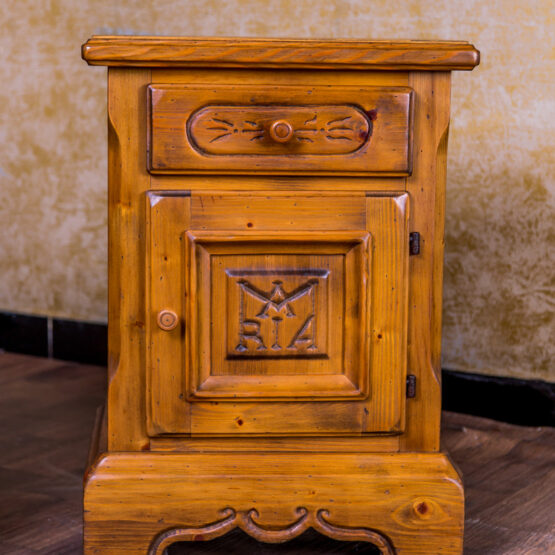 Dieses Schränkchen verfügt im oberen Bereich über eine Schublade und bieten Ihnen genügend Stauraum. Der untere Teil ist mit einer Türe zu öffnen.