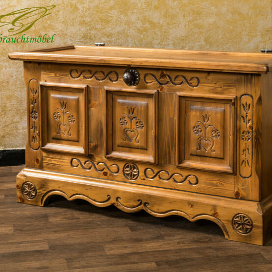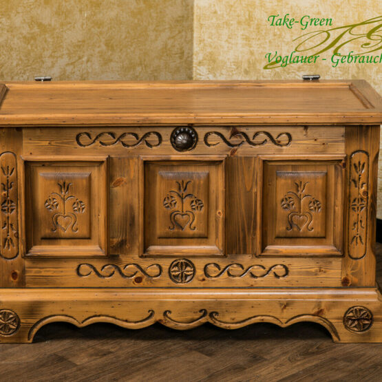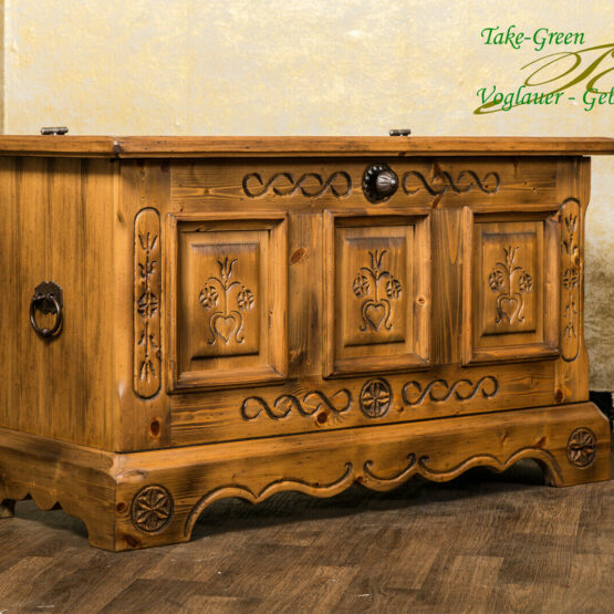 Mit ihrem rustikalen Charme und der funktionalen Gestaltung ist diese Truhe ein Highlight in jedem Flur.