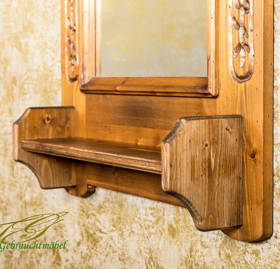 Seine elegant geschwungene Krone, zarte Schnitzereien und das warme Fichtenholz mit lebendiger Maserung erzählen von Sorgfalt, Hingabe – und einer Ära, in der Möbel noch Geschichten trugen.