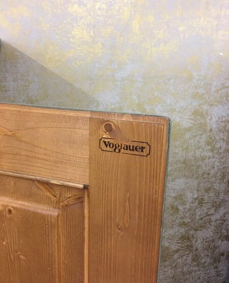 Die geschnitzten Zierleisten, floralen Bordüren und das charakteristische Vogeldekor am Sockel lassen sofort erkennen – hier steckt echtes Handwerk drin. Hinter der Tür mit originalem Schmiedebeschlag verbergen sich zwei feste Einlegeböden, die praktischen Stauraum für Geschirr, Wäsche oder Alltagsgegenstände bieten.