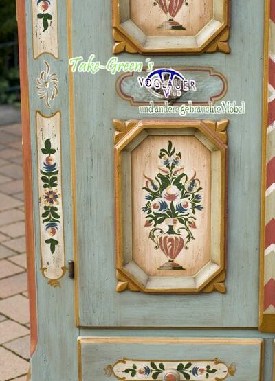 Zarte Bordüren, feine Patina und geschnitzte Rahmen verleihen dem Möbelstück seinen unverwechselbaren Charakter – für alle, die echtes Handwerk lieben und Ordnung mit Seele schätzen.