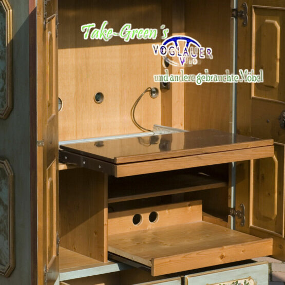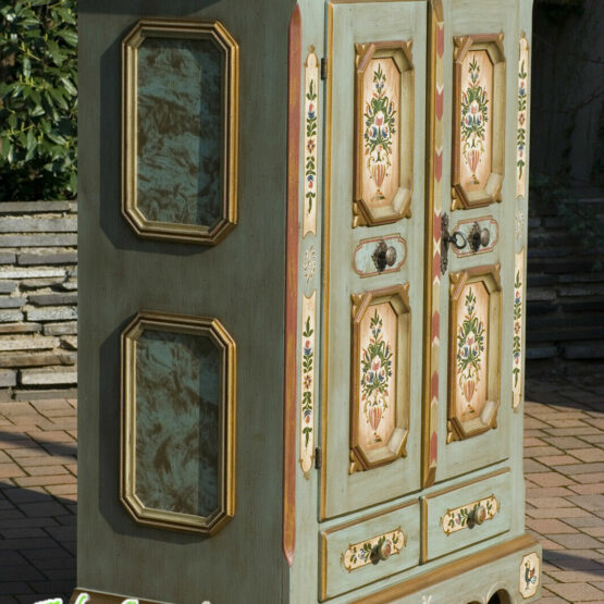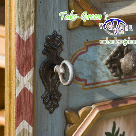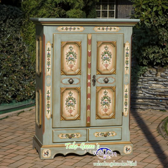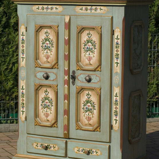 Mit seiner kunstvollen Bemalung und der robusten Verarbeitung ist dieser Schrank nicht nur ein praktisches Möbelstück, sondern auch ein dekorativer Blickfang in jedem Wohnraum.