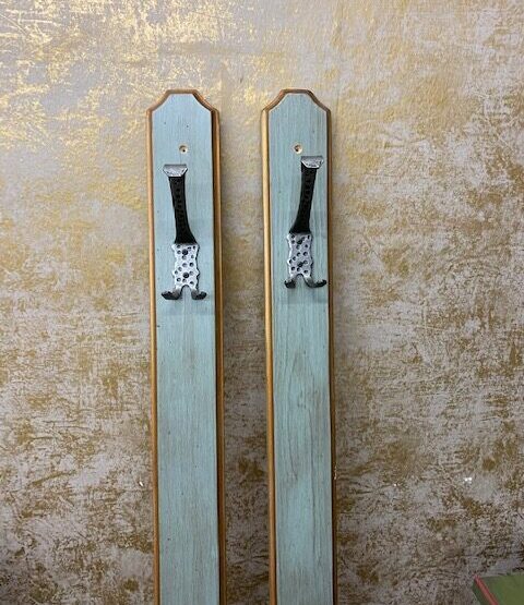 Mit seinem schmiedeeisernen Kleiderhacken an der einen Strebe wird die Wandgarderobe zum echten Blickfang in Ihrer Diele.