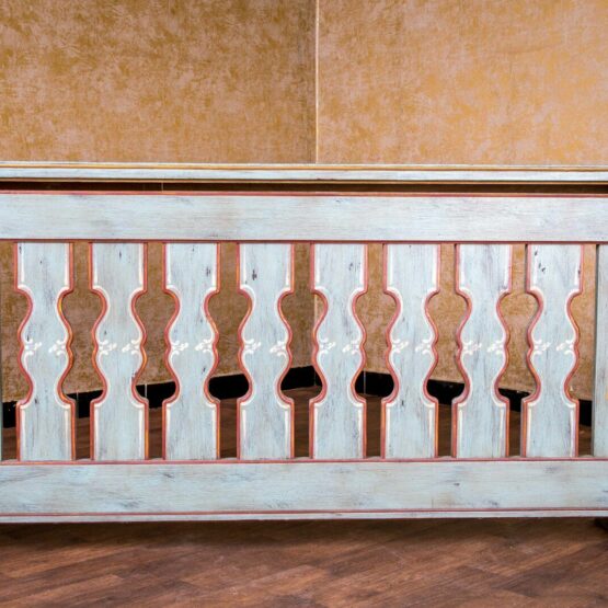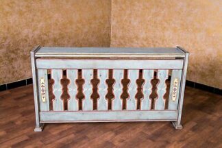 Hier sehen Sie eine wunderschöne Landhaus Heizkörperverkleidung aus der Serie Anno 1700 in Altblau.
