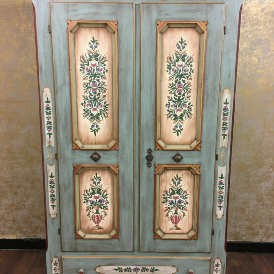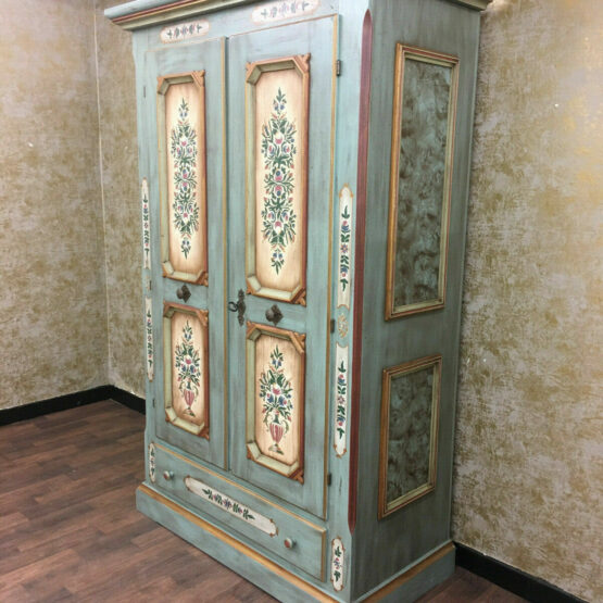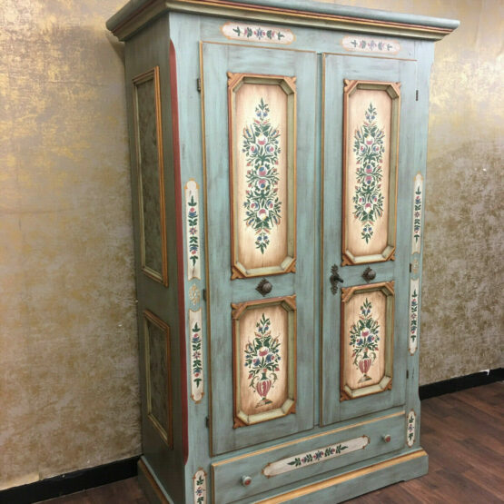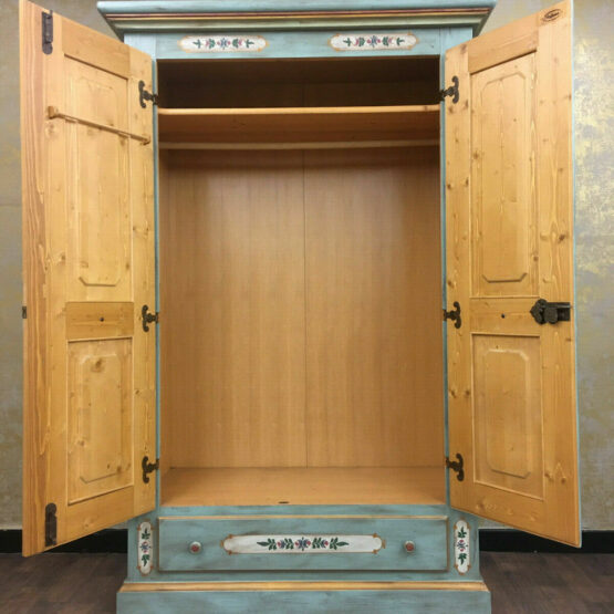 Dieser Bauernschrank verfügt über eine Kleidereinteilung.