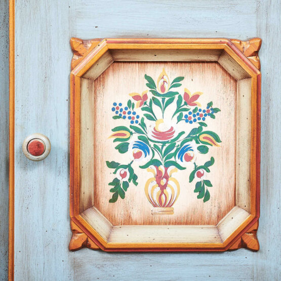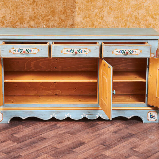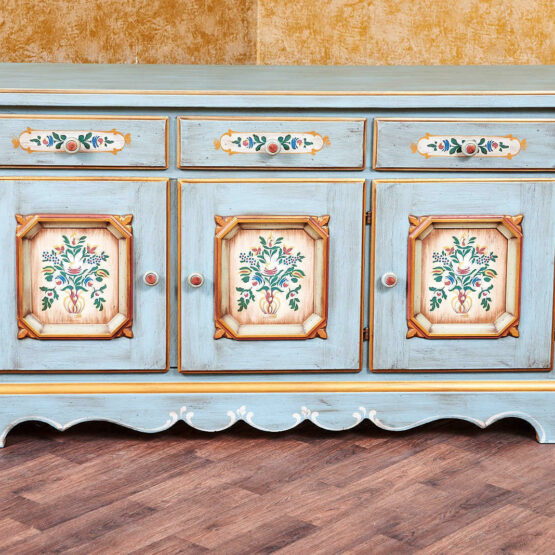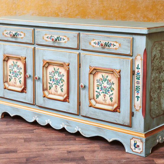 Die traditionelle Bauernmalerei verleiht dieser Bauernkommode eine exzellente Note.