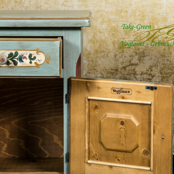 Ein kleines Möbelstück mit großer Ausstrahlung: Dieser originale Voglauer Nachttisch aus der beliebten Serie „Anno 1700“ bringt ländlichen Charme in Ihr Schlafzimmer.