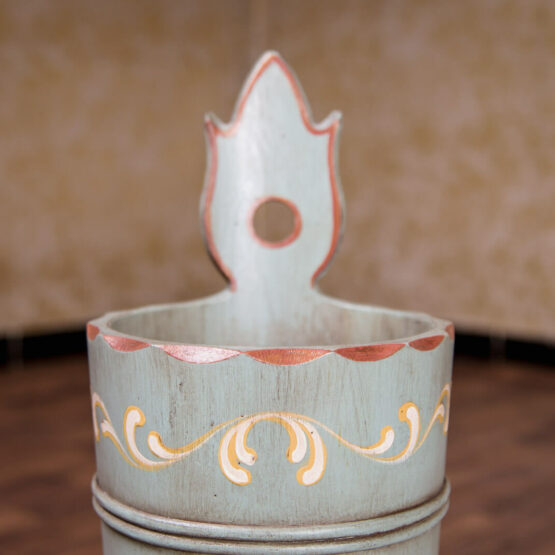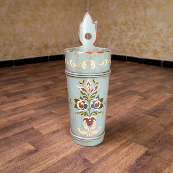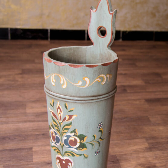 In edlem Altblau gehalten und mit traditioneller Bauernmalerei von Hand verziert, bringt er rustikale Eleganz in jede Garderobe. Der handbemalte Schirmständer vereint Funktionalität und Kunstfertigkeit und fügt sich harmonisch in jedes Zuhause ein.
