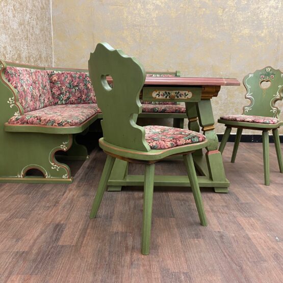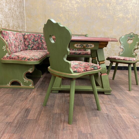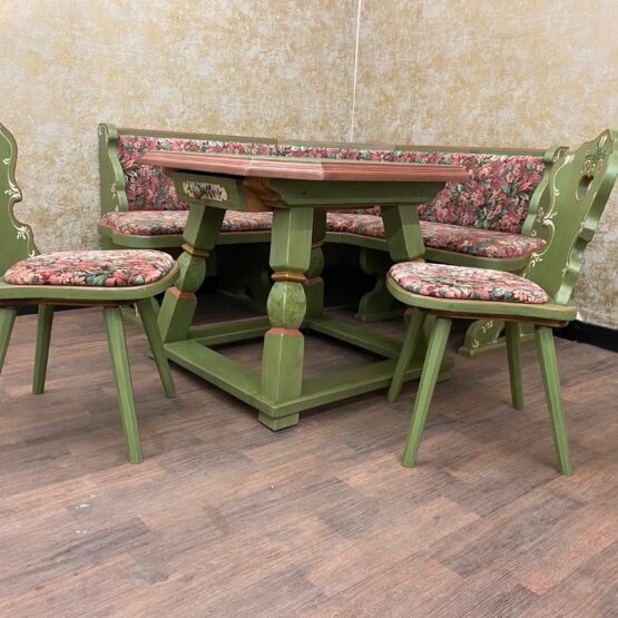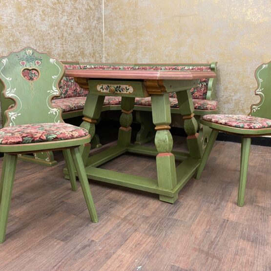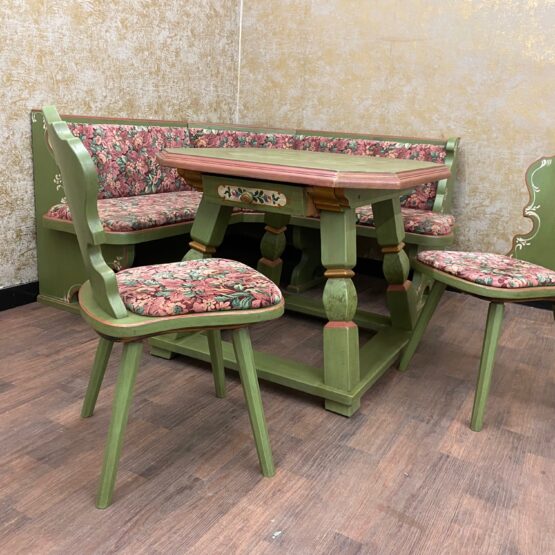 Es handelt sich bei dieser Essgarnitur, bestehend aus Eckbank, Tisch und 2 Stühlen um sehr exquisite Stücke von höchster Qualität.