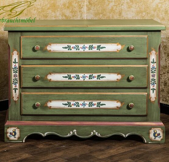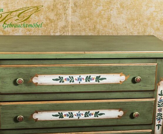 Diese originale Voglauer Kommode in Altgrün bringt den unverwechselbaren Charme alpenländischer Handwerkskunst in Ihr Zuhause.