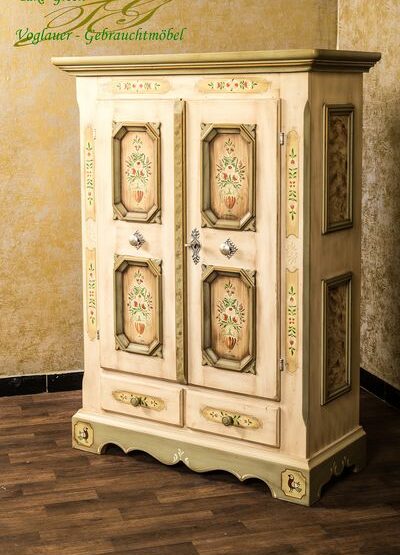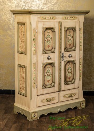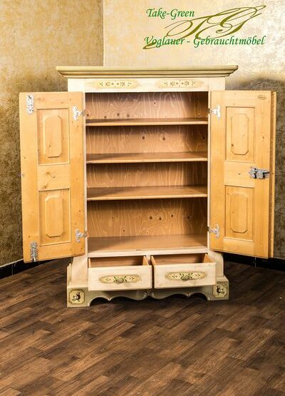 Dieser Bauernschrank verfügt über drei Einlegeböden.