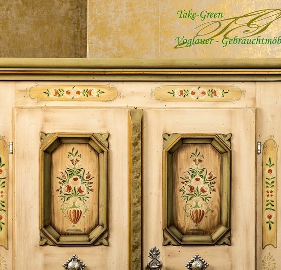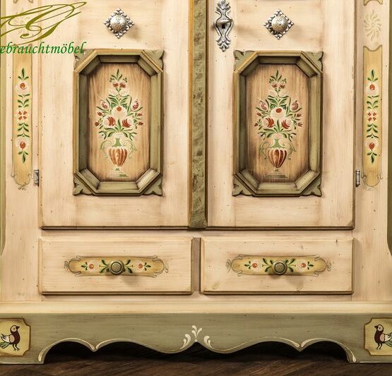 Der wunderschön bemalte Geschirrschrank ist bereits fertig montiert. Auf Wunsch kann dieses Möbelstück auch zerlegt angeliefert werden.