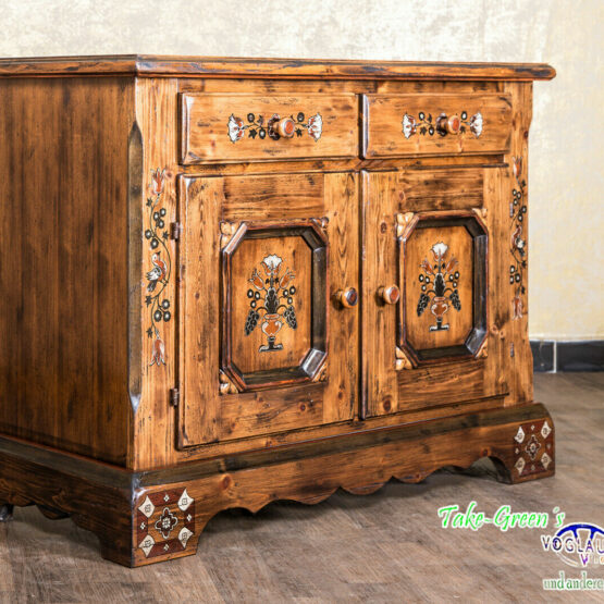 Die traditionelle Bauernmalerei verleiht dieser Anrichte einen exzellenten Charme.