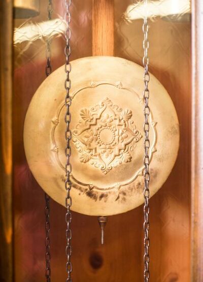 In kunstvoller Handarbeit restauriert, bleibt das Holzgehäuse ein Original – aufwendig überarbeitet, aber in seiner Seele bewahrt. Das Uhrwerk hingegen bleibt bewusst im authentischen Zustand, ein stiller Zeuge der Jahrzehnte.