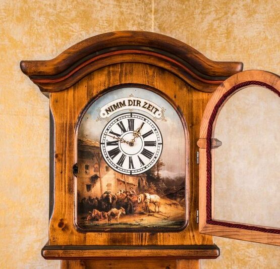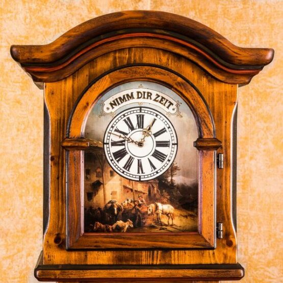 Bemalte Zierleisten, sanft gealterte Oberflächen und handgeschnitzte Details machen jede Uhr zu einem unverwechselbaren Einzelstück. Ein Möbelstück, das mehr als Zeit zeigt – es erzählt Geschichte.