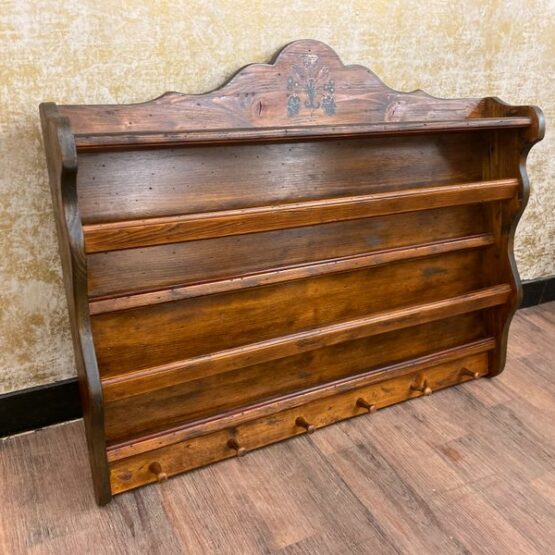 Die traditionell ausgeführte Bauernmalerei verleiht diesem massiven Wandregal eine exzellente Note.