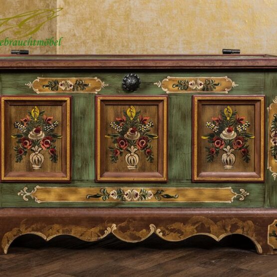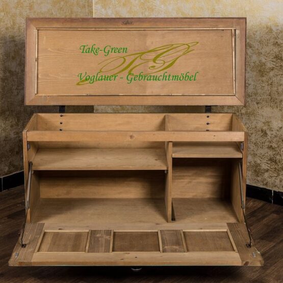 Diese wunderschöne Bauerntruhe aus dem Hause Voglauer begeistert nicht nur mit ihrem kunstvollen Design und den detailreichen Verzierungen, sondern auch mit einer durchdachten Inneneinteilung. Im Inneren erwartet Sie großzügiger Stauraum, der sich dank der praktischen Einlegeböden individuell nutzen lässt. Besonders praktisch: Die Truhe kann sowohl nach oben als auch nach vorne geöffnet werden.