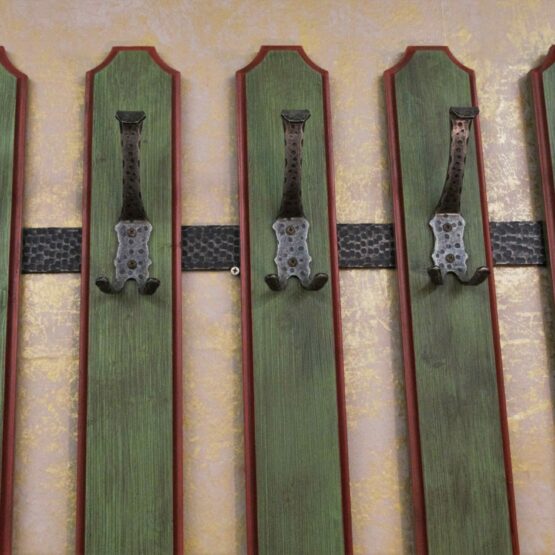Mit seinen schmiedeeisernen Kleiderhacken an den fünf Streben wird die Wandgarderobe zum echten Blickfang in Ihrer Diele.