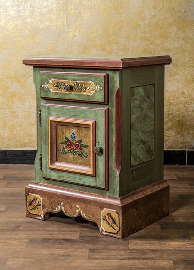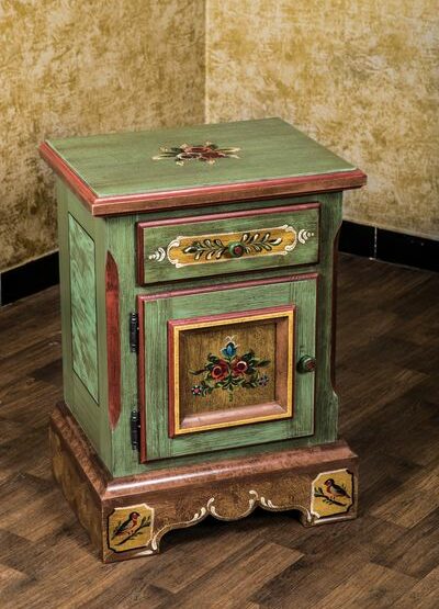 Wie aus der Stube eines liebevoll gepflegten Bauernhofs: Dieser originale Voglauer Nachttisch aus der Serie “Anno 1800” bezaubert mit traditioneller Formensprache und kunstvoller Bemalung.