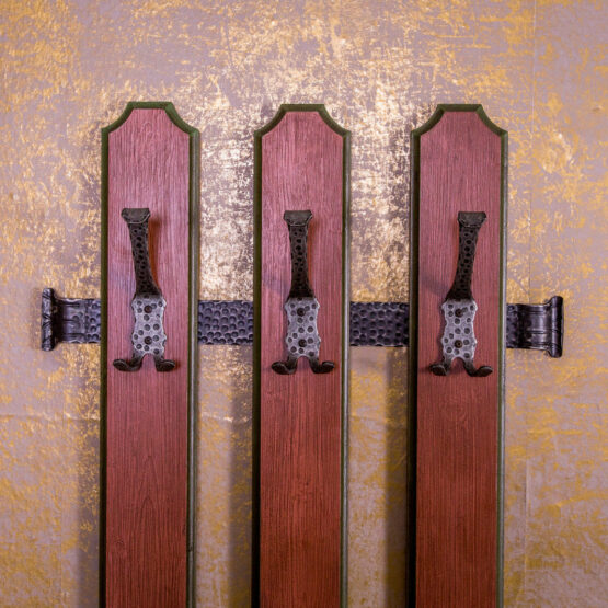 Mit seinen schmiedeeisernen Kleiderhacken an den drei Streben wird diese Wandgarderobe zum echten Blickfang in Ihrer Diele.