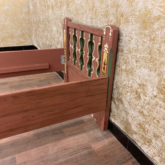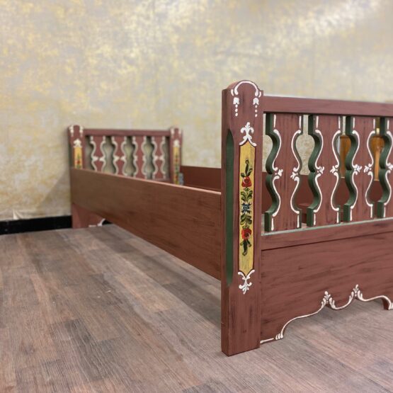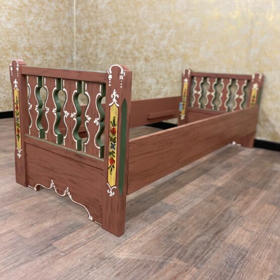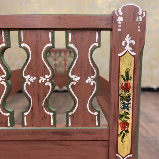Die Rückenlehne aus massivem Holz rahmt das Möbel wie ein stilles Versprechen an vergangene Zeiten – und lädt zugleich ein zum Anlehnen, Ausruhen, Verweilen. Ideal für Gästezimmer oder Ferienwohnungen, wo nicht nur geschlafen, sondern gewohnt wird. Ein Stück gelebte Heimat für Menschen mit Sinn für das Echte.