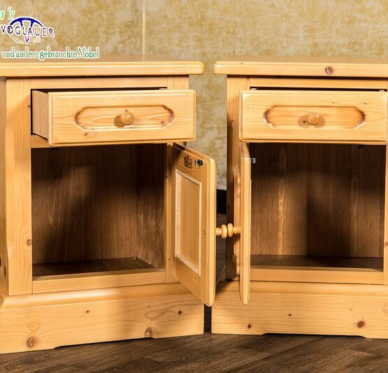Diese beiden schönen Nachttische aus der Serie „Anno 1800“ begeistern durch ihre schlichte Eleganz und das warme Naturholz. Mit ihrem klaren Design und den feinen Details bringen sie eine gemütliche, ländliche Atmosphäre in Ihr Zuhause.