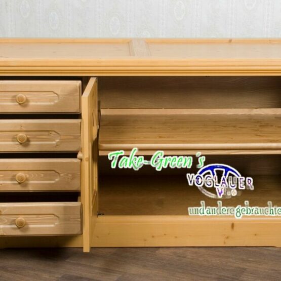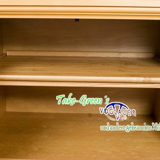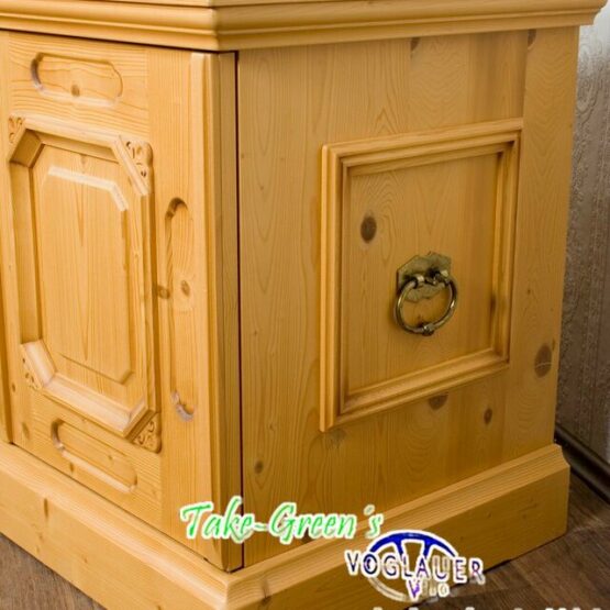 Dieses originale Voglauer Sideboard verbindet alpenländische Handwerkskunst mit durchdachter Funktionalität. Gefertigt aus massivem, goldtonfarbenem Fichtenholz und liebevoll verziert, bringt es nicht nur Wärme und Charme in den Raum – sondern auch Ordnung.