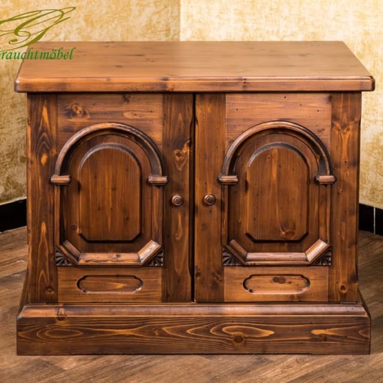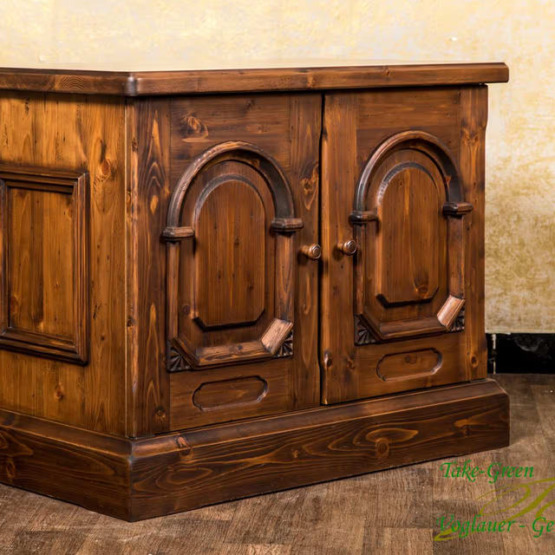 Das massive Fichtenholz schenkt ihr eine edle, dunkle Optik, die dem Möbelstück nicht nur einen charmanten Vintage-Charakter, sondern auch eine zeitlose Ausstrahlung verleiht.