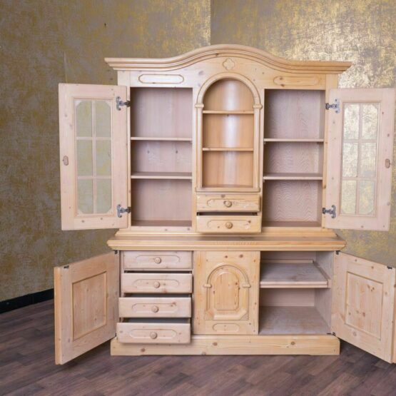 Dieses stilvolle Buffet aus der Serie “Anno 1900” vereint traditionelle Handwerkskunst mit praktischer Aufteilung. Gefertigt aus massivem Fichtenholz in hell-antiker Ausführung, strahlt das Möbelstück eine freundliche Wärme aus.