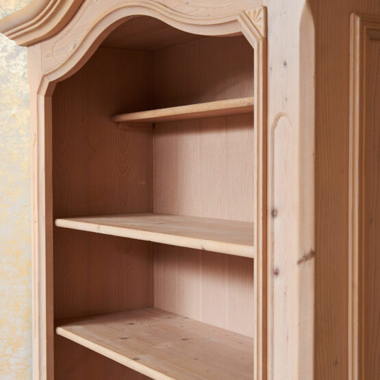 Dieser Regalschrank aus der Serie “Anno 1900” überzeugt durch seine imposante Form und die warme Ausstrahlung des hellen, naturbelassenen Fichtenholzes.