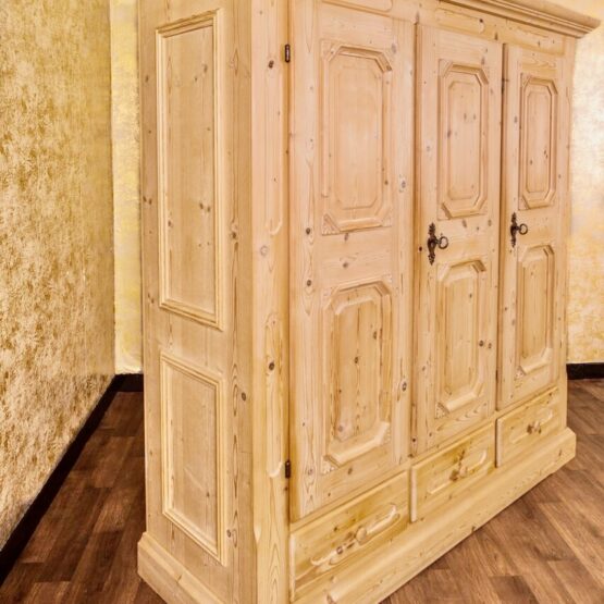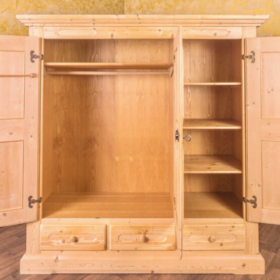 Ein schöner und klassischer Bauernschrank von “Voglauer”, der sich durch seine praktische Aufteilung sowohl als Garderoben- wie auch als gängiger Kleiderschrank eignet.