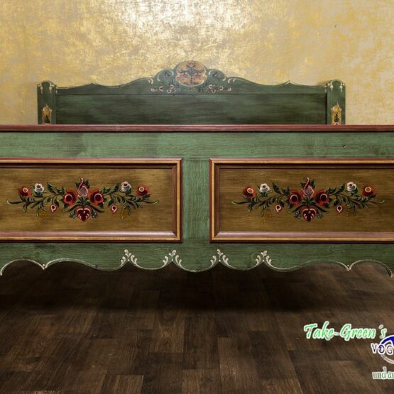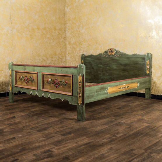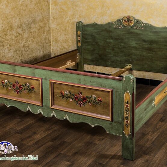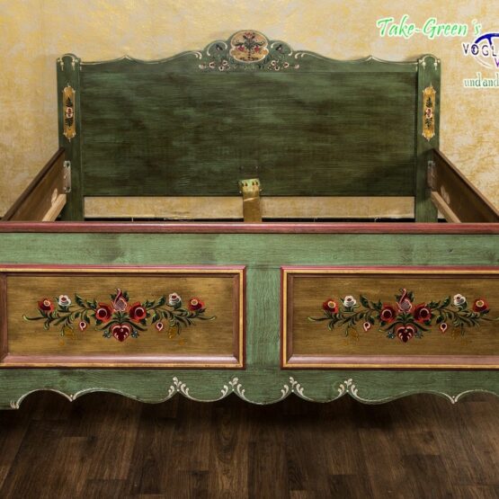 Ein wunderschönes Doppelbett im Landhausstil aus dem Hause “Voglauer”. Das massive Holz wurde von Hand bemalt, aufwendig verziert und bekommt so seinen ganz individuellen Look, der in Ihrem Zuhause für eine ländliche Note sorgt.