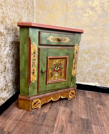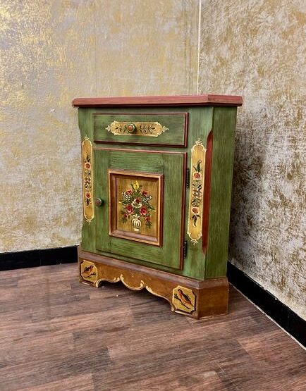 Besonders ins Auge fällt die kunstvolle Handbemalung: Mit floralen Mustern und warmen Farben schafft sie eine wohnliche Atmosphäre, die an alpenländische Tradition erinnert. Ein echtes Schmuckstück für alle, die das Besondere lieben – im Alltag und im Detail.