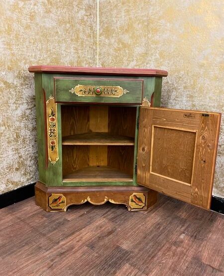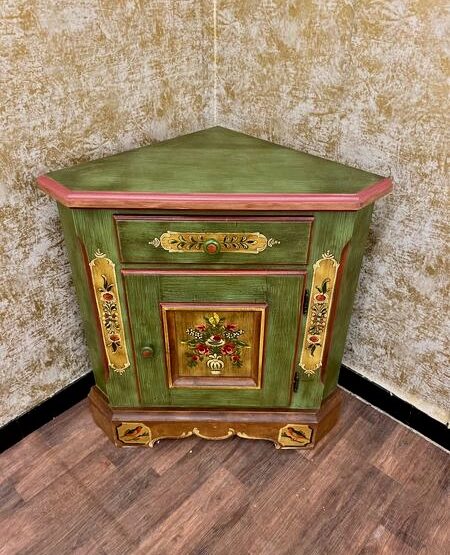 Dieses originale Voglauer-Möbelstück verbindet auf besondere Weise Funktion und Formgefühl: Die kompakte Eckkommode schmiegt sich elegant in ungenutzte Raumecken und bringt dabei echten Landhauscharme mit.