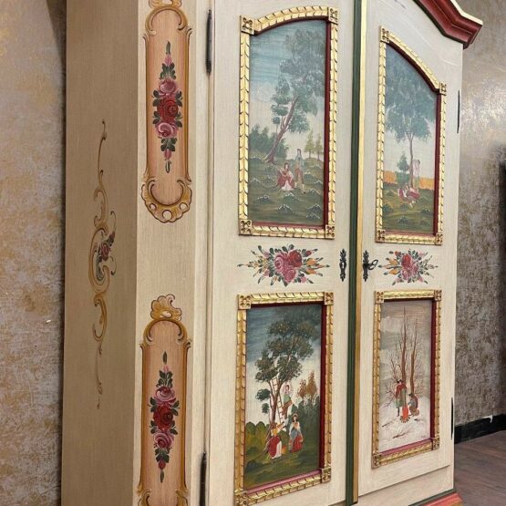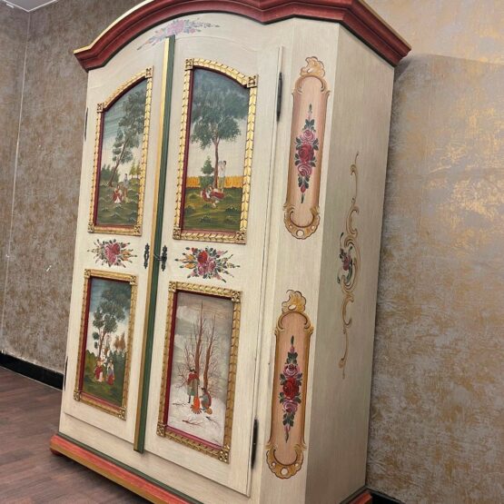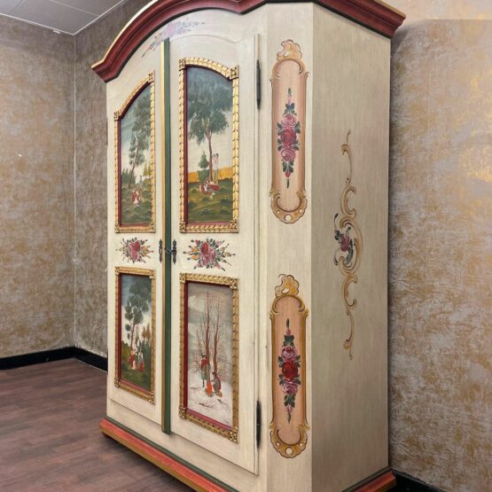 Die wunderschönen 4 Jahreszeiten Bemalungen verleihen diesem bezaubernden Wäscheschrank eine antike Note.