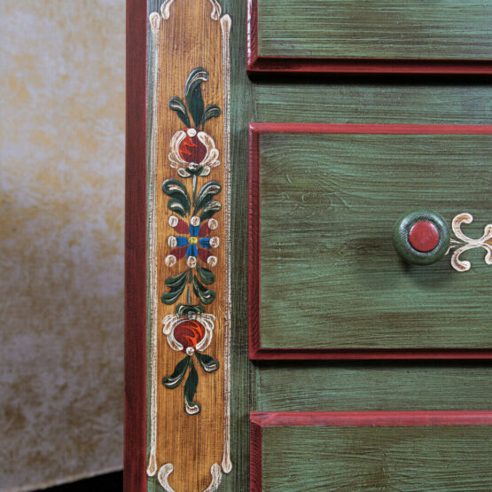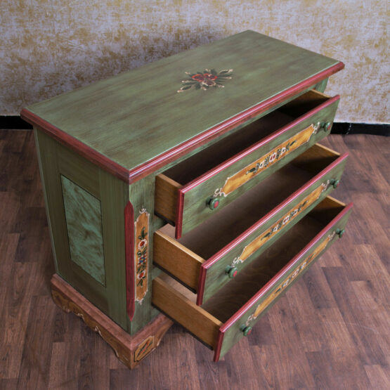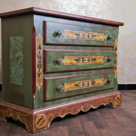 Praktische und zeitlose Kommode von “Voglauer” mit drei großen Schubladen. Hier finden Sie genügend Platz zum Aufbewahren Ihrer Gegenstände oder Kleidungsstücke. Die schönen Verzierungen verleihen diesem Möbelstück eine ganz individuelle Note.