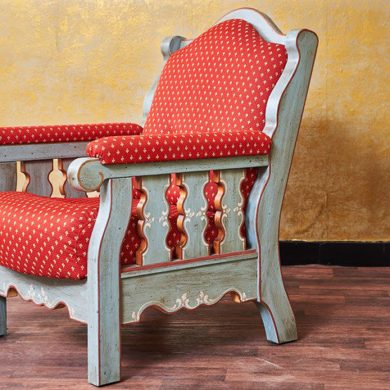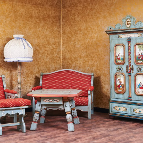 Die Voglauer Möbelstücke aus der Serie “Anno 1700” vereinen traditionelles Handwerk mit einzigartigem Design. Sie zeichnen sich durch ihre sorgfältige Handbemalung in einem angenehmen Altblau aus und verleihen so Ihren Räumen eine zeitlose Eleganz.
