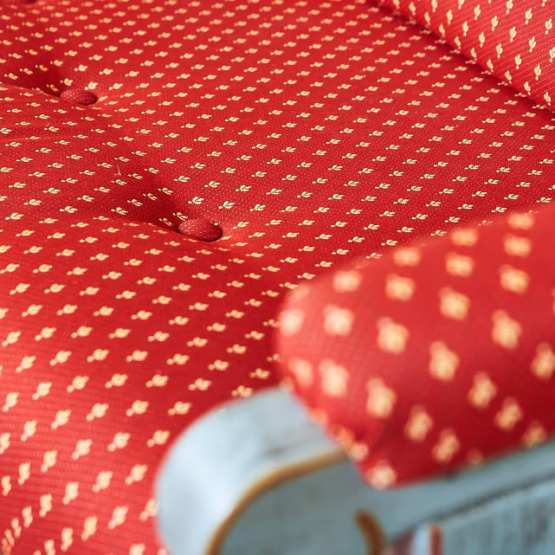Momentan sind zwei Sessel verfügbar, wobei der angegebene Preis für jeweils ein Exemplar gilt. Zudem sind passende Hocker und eine Bauernliege aus derselben Serie ebenfalls erhältlich, die das Ensemble perfekt abrunden. Dieses hochwertige Möbelstück ist eine exzellente Wahl für Liebhaber klassischer Möbel mit einem modernen Twist.