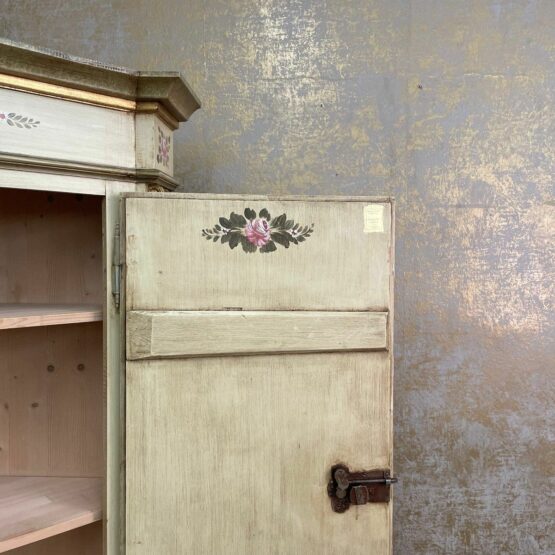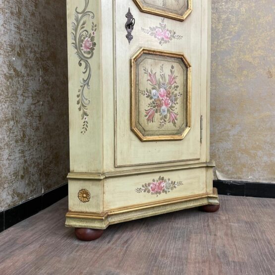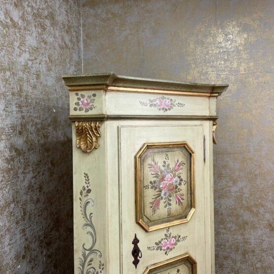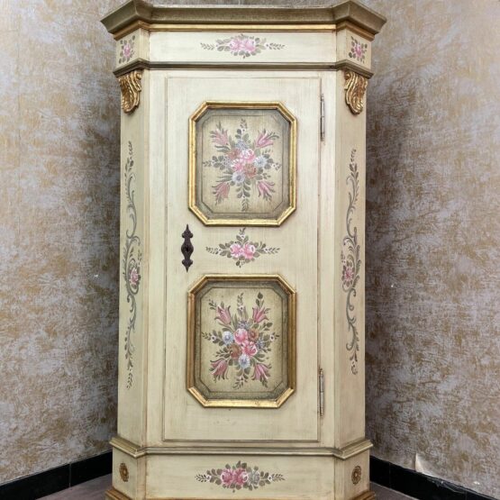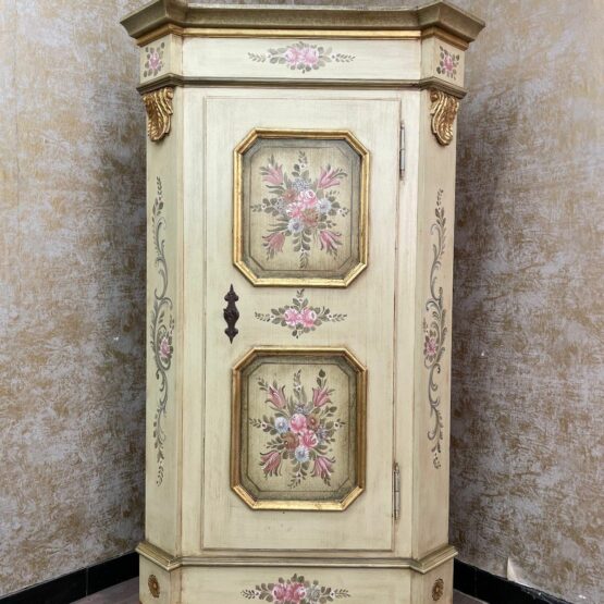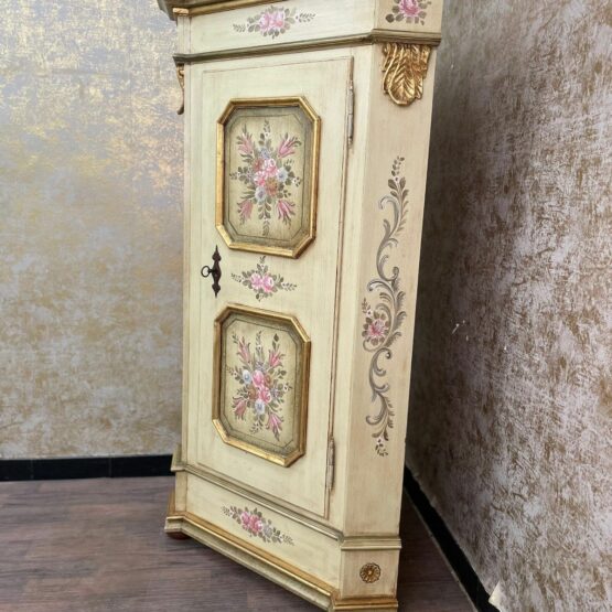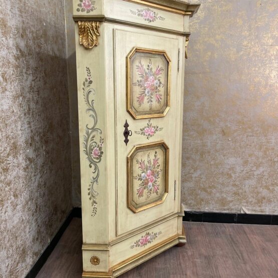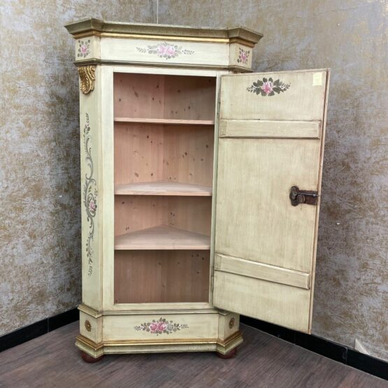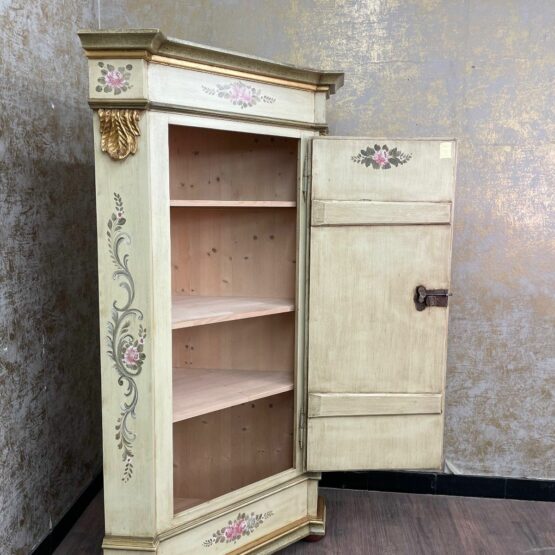 Stilvoller Rahmer Eckschrank in Altweiß, ein charmantes Möbelstück, das Funktionalität und ästhetischen Reiz vereint. Dieser eintürige Bauernschrank passt perfekt in jede Ecke Ihres Raumes und nutzt den Platz optimal aus. Der Schrank verfügt über vier Fächer, die großzügigen Stauraum für Ihre Gegenstände bieten. Mit seinem klassischen Altweiß-Farbton und der hochwertigen Verarbeitung fügt sich der Eckschrank harmonisch in jede Einrichtung ein.