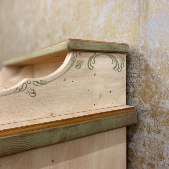 Der Voglauer Sekretär in der Farbe Altweiß bietet Ihnen eine ausreichend große Arbeitsfläche mit drei kleinen praktischen Trennwänden und einer Ablagefläche darüber. Weiterhin haben Sie die Möglichkeit, in den beiden Schubkästen Briefe, Papiere oder Ähnliches zu verstauen.