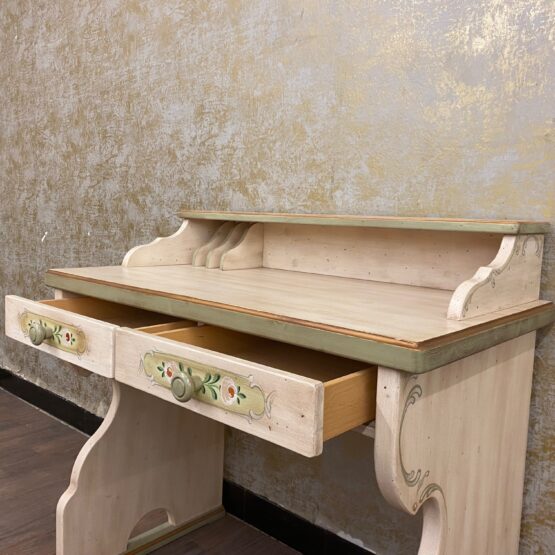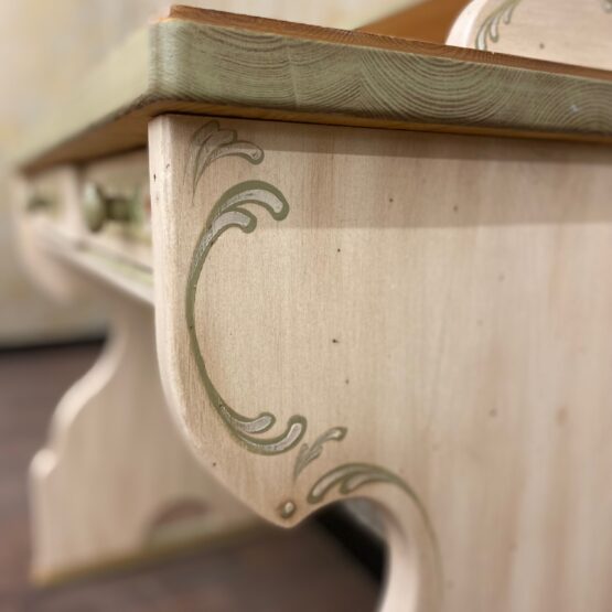 Dieser Schreibtisch wirkt keineswegs wuchtig, sondern passt sich hervorragend Ihren Räumen an und verleiht diesen eine schöne Landhausnote.