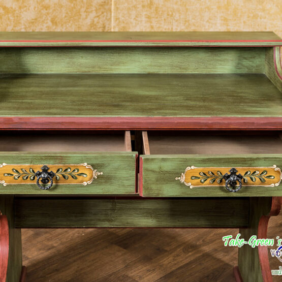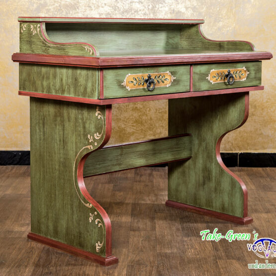 Ein schöner und ausgesprochen besonderer Schreibtisch aus der Voglauer-Serie “Anno 1800” in Altgrün.