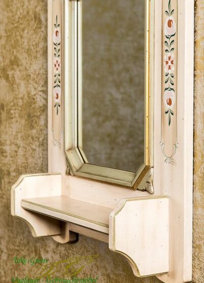 Besonders hervorzuheben ist die typische Bauernmalerei, mit welcher dieser Wandspiegel verziert wurde. Diese verleiht ihm eine besondere Note.